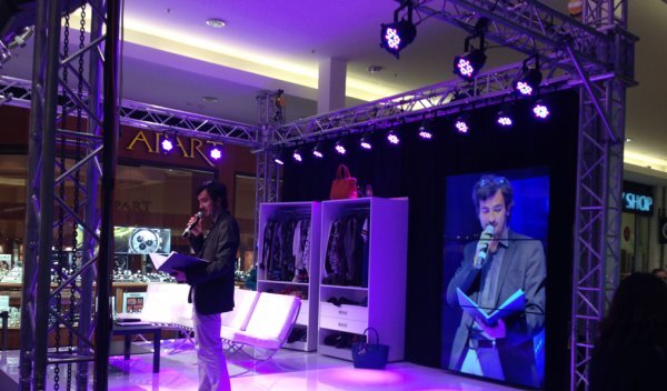 Ekrany bezszwowe LED 55 podczas pokazu mody w centrum handlowym.