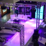 Zapewniamy kompletny sprzęt do organizowania pokazów mody w centrach handlowych. Obsługa techniczna imprezy polega na zbudowaniu wybiegu z podestów scenicznych, instalacji oświetlenia (ruchome głowy, reflektor prowadzący), nagłośnienie oraz przekazu obrazu z kamery na telebim (ekrany bezszwowe lub ekrany diodowe).