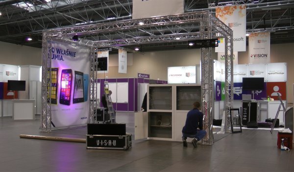 W październiku 2013 roku w Expo XXI miała miejsce konferencja Microsoft Technology Summit 2013. Podczas konferencji swoje produkty prezentowała Nokia. To właśnie dla Nokii budowaliśmy stoisko promocyjne. Do tego celu wykorzystaliśmy: aluminiową konstrukcję sceniczną, oświetlenie oraz ekrany LED.