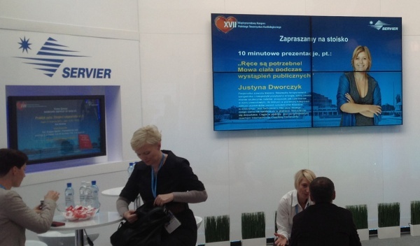 W multimedia wyposażyliśmy stoisko kongresowe dla firmy farmaceutycznej. Do tego celu użyliśmy ekranów bezszwowych 55" w układzie 2x2 elementy, ekranów LED 46", listew LedBar (z DMX). Podczas kilkudniowego kongresu zapewnialiśmy również obsługę techniczną oraz oświetlenie (ruchome głowy, itp) podczas sesji naukowej w auli głównej. Efekt świetlny przypominał wodę wypełniającą sufit i ściany całej sali wykładowej.