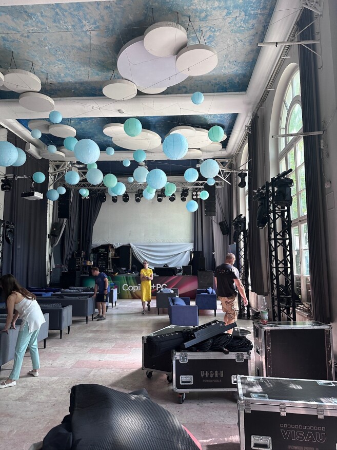 - konstrukcja sceniczna - zgodna z założoną scenografią lub wymaganiami brandu. Organizowanie imprez z wykorzystaniem konstrukcji scenicznej najczęściej oznacza montaż podestów scenicznych oraz aluminiowej konstrukcji scenicznej, na której zainstalowany jest inny sprzęt multimedialny (ekrany bezszwowe, plazmy, nagłośnienie, oświetlenie).