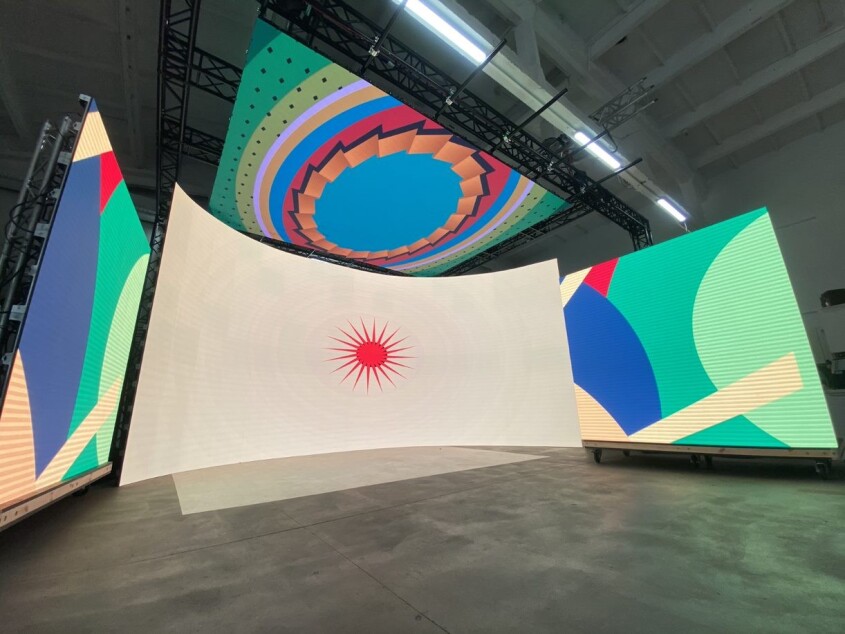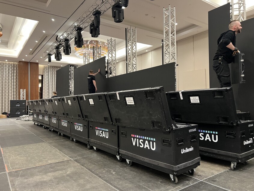 Rozsuwane ekrany podczas eventu, synchronizacja między rozsuwanymi ekranami a wyświetlanym contentem. Natychmiastowa zmiana aranżacji podczas wydarzenia. Efektowne wyjście prelegenta na scenę.Podesty. Biteki.