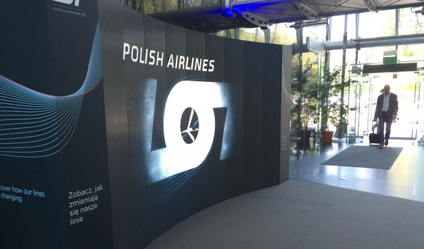 Wygięty(!) ekran diodowy na stoisku PLL LOT, Warszawa